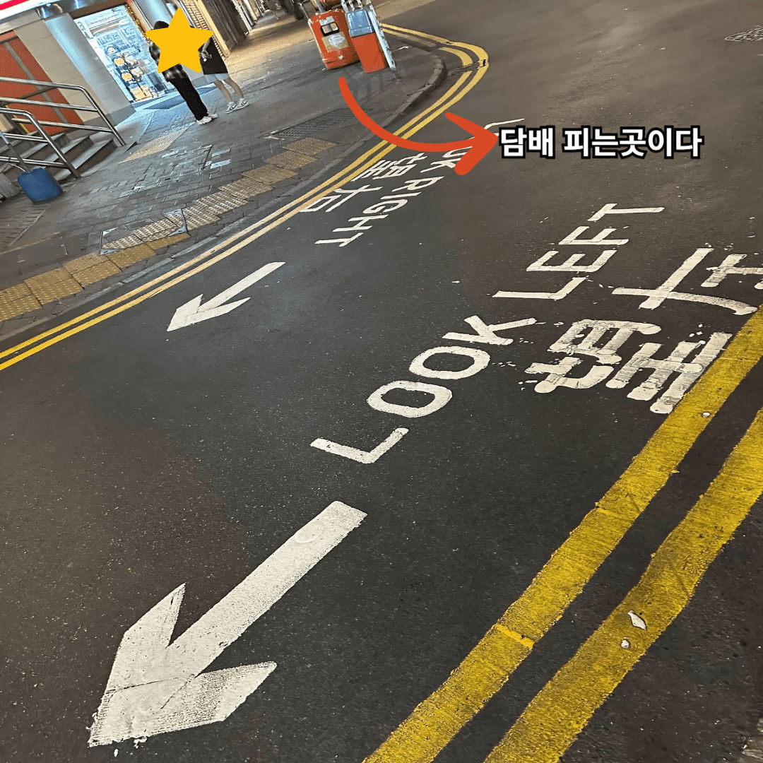 한국은 횡단보도 5m, 버스정류장 10m 이내의 흡연이 금지되어 있다. 걸릴 시 과태료 처분을 받게 된다. 하지만 홍콩은 이런 한국과 정반대이다. 사진과 같은 횡단보도 옆에 흡연할 수 있는 장소가 있다. 일반적으로 알고있는 횡단보도 옆에도 담배를 버리는 쓰레기통이 있고, 저런 횡단보도에도 있어서 은근 흡연할 곳이 많다. 심지어 버스정류장에도 저런 담배 쓰레기통이 있다.